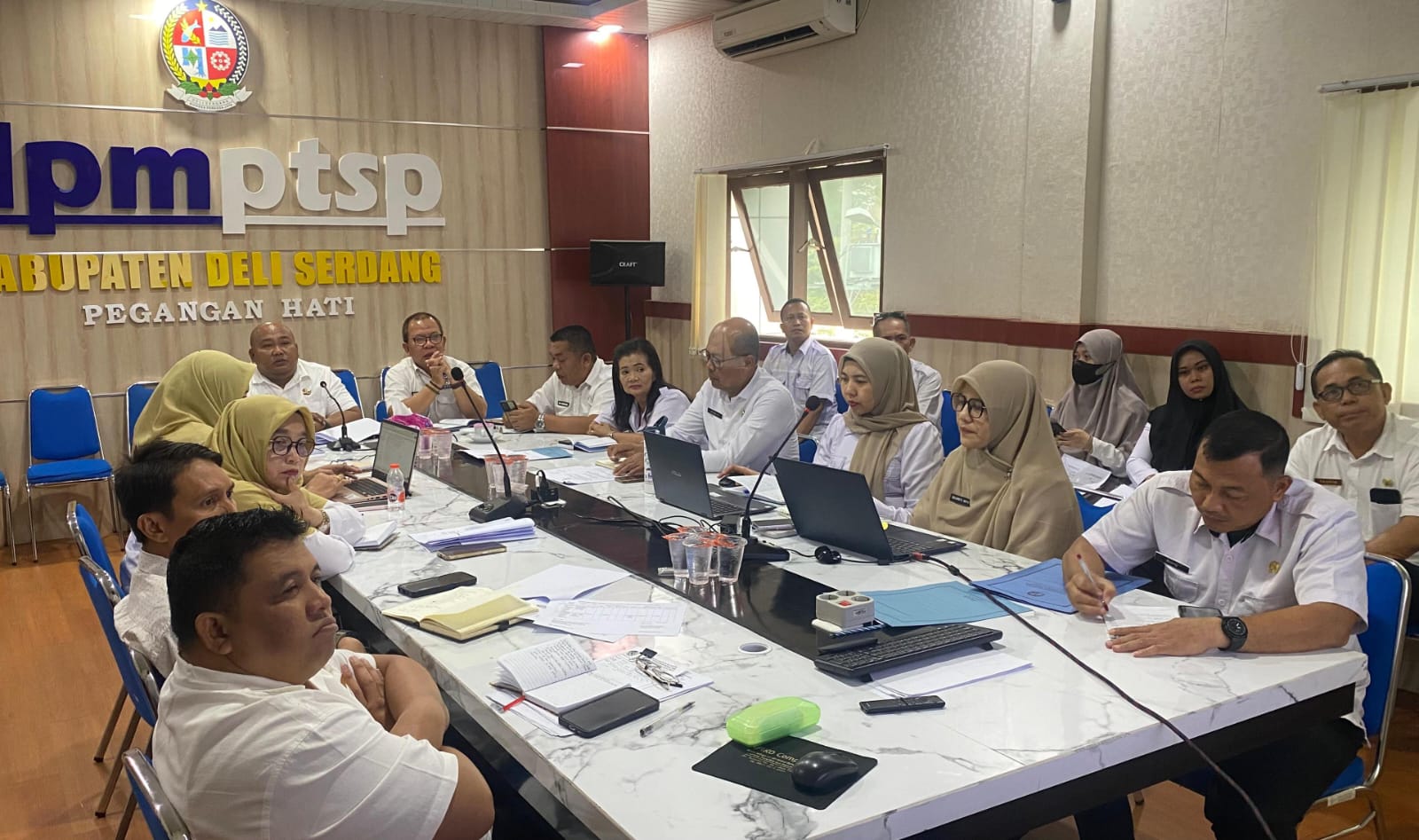 Rapat pembahasan standar pelayanan perizinan terkait SOP terintegrasi Mal Pelayanan Publik (MPP) bersama para Pejabat Administrator dan Analis Kebijakan Ahli Muda di Kantor Dinas PMPTSP Deli Serdang, Rabu (11/3/2026). Para pelaku usaha jasa makanan dan minuman, serta penyediaan akomodasi di wilayah Deli Serdang diwajibkan untuk memiliki Sertifikat Laik Higiene Sanitasi (SLHS), Sertifikat Laik Sehat (SLS) dan Label Higiene Sanitasi Pangan (HSP). (Dok Dinas PMPTSP Deli Serdang)